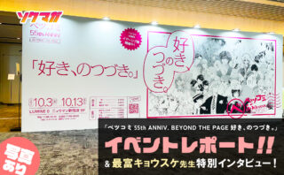 取材・インタビュー 【イベントレポート】ベツコミ創刊55周年記念展「ベツコミ55th ANNIV. BEYOND THE PAGE 好き、のつづき。」魅力の全貌&最富キョウスケ先生の特別インタビュー! 2025年10月3日(土)〜10月13日(月・祝)の期間、LUMINE 0 ニュウマン新宿店 5Fにて開催されるベツコ... 2025.10.03 取材・インタビューおすすめ漫画