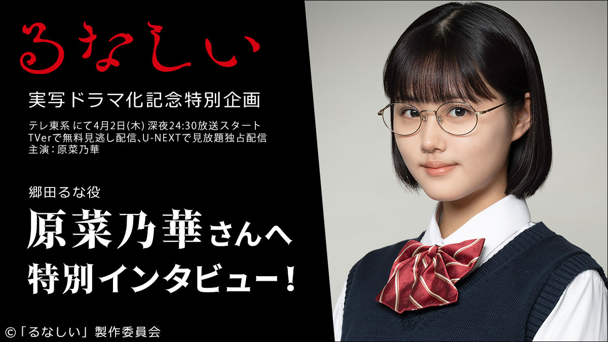 原菜乃華さん、貴重なインタビューの機会をありがとうございました! 『るなしい』テレ東系にて毎週木曜深夜24:30放送 TVerで無料見逃し配信、U-NEXTで見放題独占配信 主演:原菜乃華 ドラマの前に原作を読んで予習もいかがでしょうか! ソク読みでも『るなしい』特集を実施中!読むならいまがチャンス♪