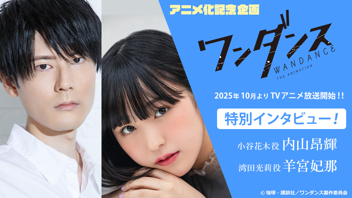 2024年10月『来世は他人がいい』、2025年1月『メダリスト』、7月『ぐらんぶる』と映像化でヒットを連発しているアフタヌーン編集部が次に放つ映像化企画、2025年10月はついに『ワンダンス』アニメ化!! 9月に新刊14巻配信、10月にアニメ放送開始、2か月連続で注目トピックとなりました。 電子書店「ソク読み」では講談社様のご協力により、アニメ『ワンダンス』の主演声優である内山昂輝さん、羊宮妃那さんへインタビューを実施しました! 漫画ファンの皆様はもちろん、アニメファン、内山さん・羊宮さんのファンの皆様にもアニメ『ワンダンス』にまつわるメッセージをお届けします。 また、ソク読みでは2025年9月22日~10月12日の期間中にて「『ワンダンス』アニメ化記念 舞台で輝くキミから目が離せない……! 心が踊り出す青春マンガ特集」を実施中! あわせてチェックしてください!