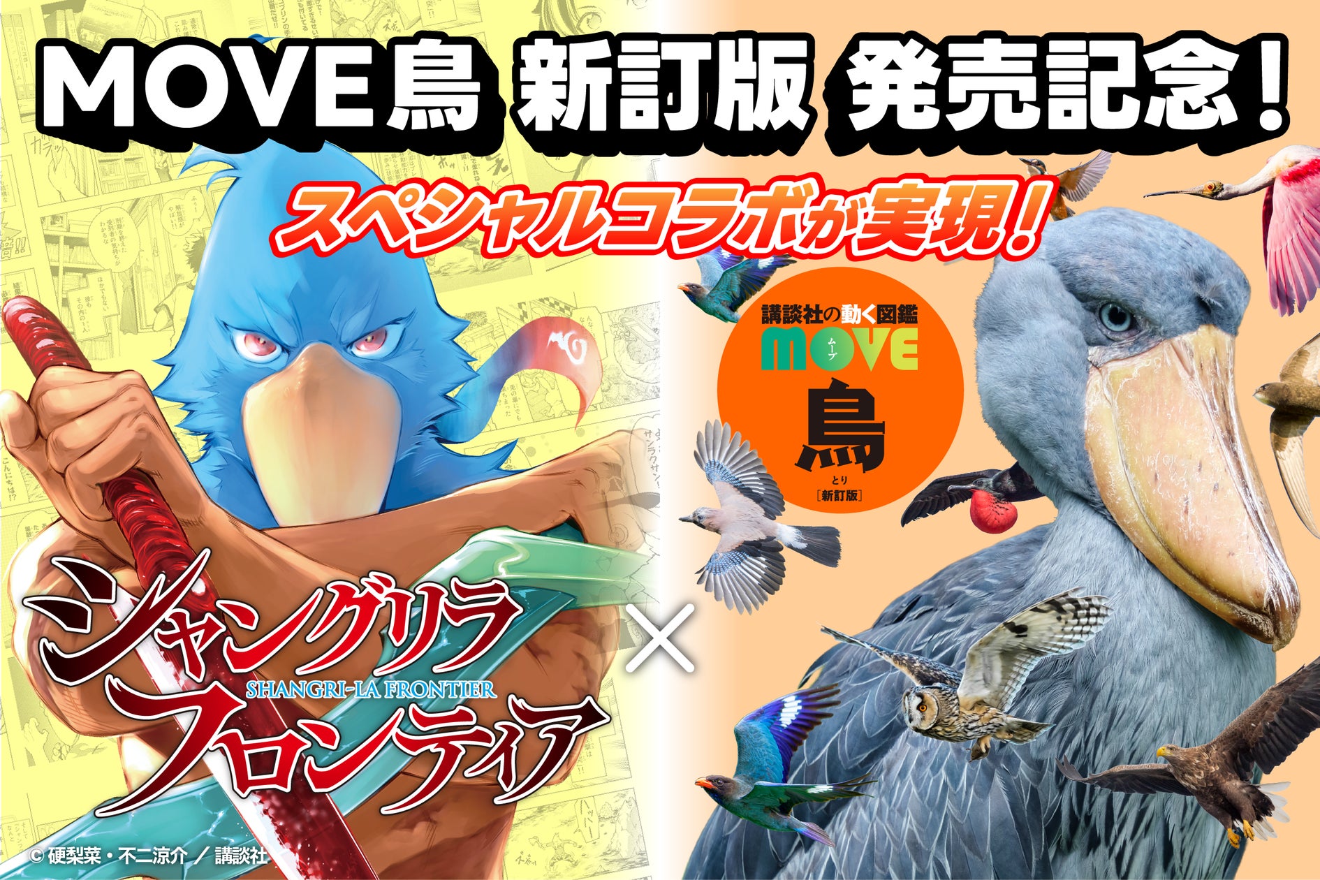 株式会社講談社は子どもに大人気の図鑑「講談社の動く図鑑MOVE」シリーズの新刊『鳥 新訂版』の表紙を飾るハシビロコウと、累計650万部を突破した週刊少年マガジンで連載中の『シャングリラ・フロンティア』のスペシャルコラボを発表した。