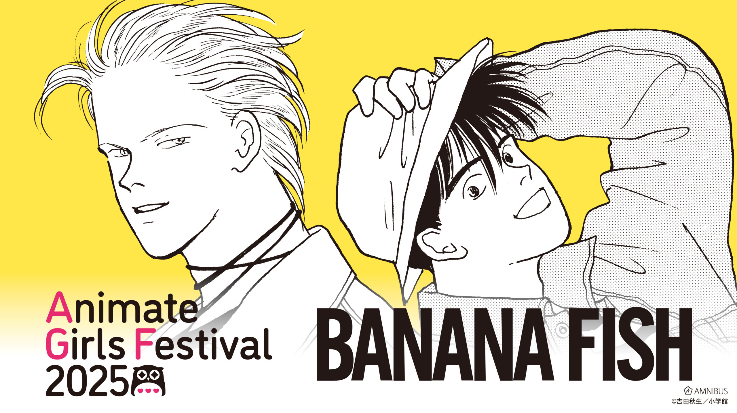 2025年11月8日(土)~2025年11月9日(日)に開催の「アニメイトガールズフェスティバル2025」にて「AMNIBUS」ブースの出展が決定いたしました。 今回のイベントでは、『BANANA FISH』より新規グッズを多数先行販売する他、イベント購入特典の配布を予定しております。 ファン必見のアイテム発売となっておりますので、ご来場を心よりお待ちしております。 「アニメイトガールズフェスティバル2025」 開催期間:2025年11月8日(土)~2025年11月9日(日) 開催場所: <メイン会場> 池袋・サンシャインシティ 展示ホールA 〒170-0013 東京都豊島区東池袋3-1-3 ワールドインポートマートビル4F 池袋・サンシャインシティ 展示ホールB、C、D 〒170-0013 東京都豊島区東池袋3-1-4 文化会館ビル4F、3F、2F 出展メーカー名:AMNIBUS 開催時間:9:00~17:00(最終入場は16:30) ※ご入場にはアニメイトガールズフェスティバル2025の入場チケットが必要です。 ▼「アニメイトガールズフェスティバル2025」AMNIBUS特設サイト https://event.amnibus.com/agf2025/ ▼「アニメイトガールズフェスティバル2025」公式特設サイト agf-ikebukuro.jp/s/agf2025/ ――――――――――――――― 【イベント先行販売グッズ情報】