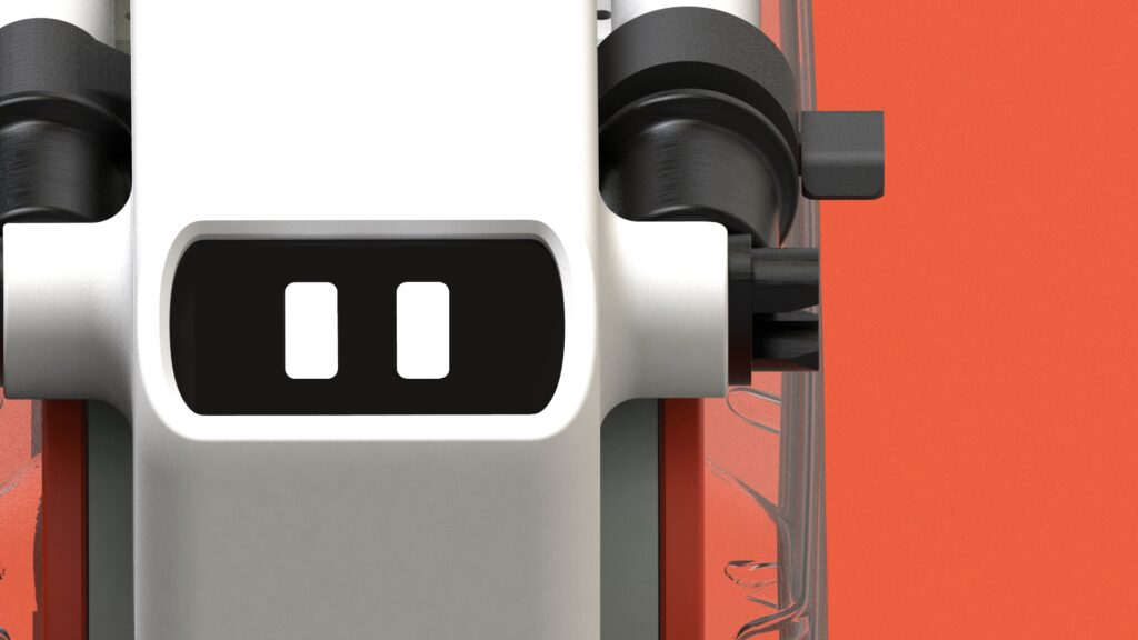Japan Mobility Showではロボティクスを取り入れた最新のコンセプトモデルを展示。高度な技術ではなく「おもちゃ」としてのシンプルな実装で、ロボットのような振る舞いをモビリティに取り込むというコンセプトのもと、距離センサーで人物をトラッキングして表情が変わるというコミュニケーション要素を取り入れることで、単なる乗り物としてだけではなく愛着を持てるモビリティとして開発しました。