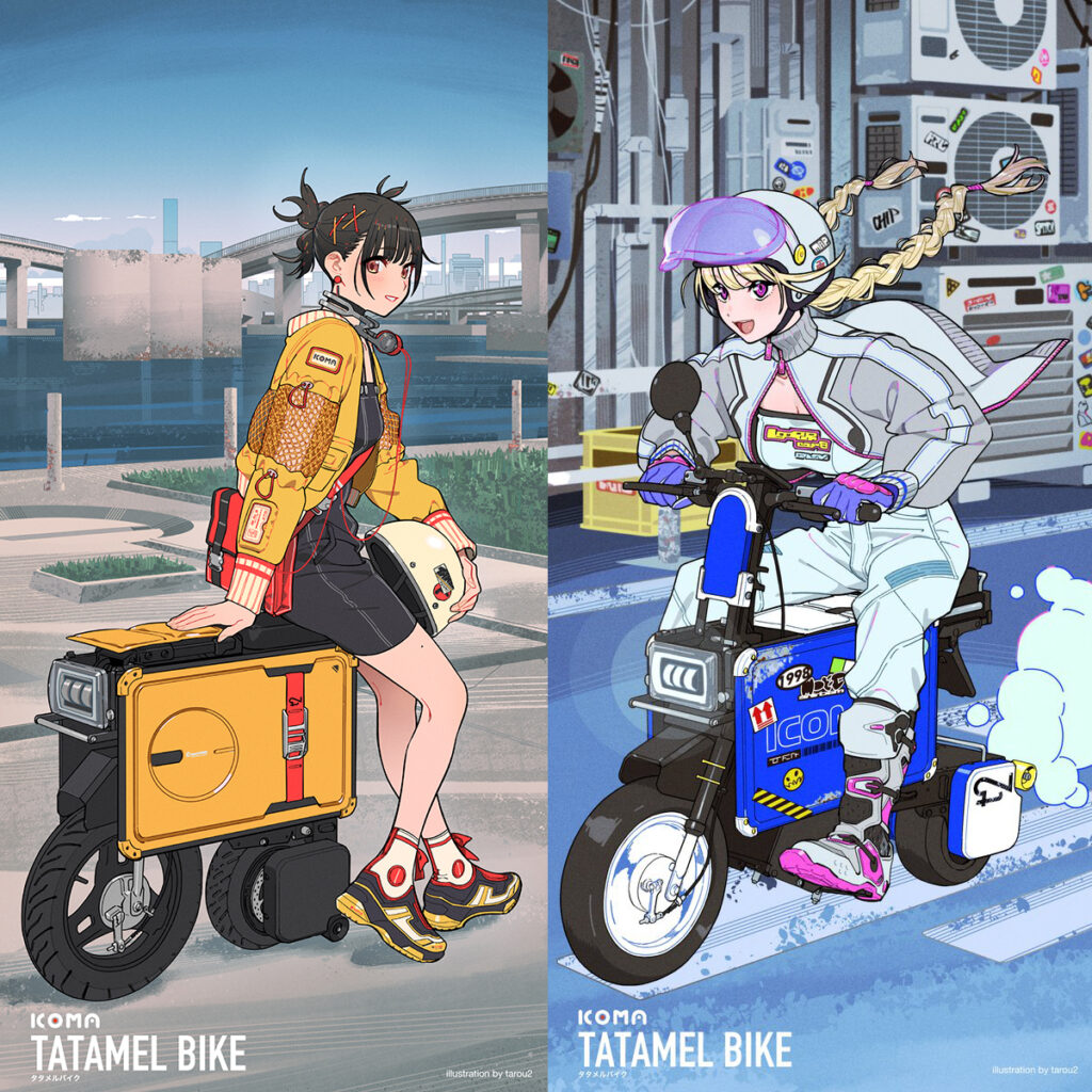 ICOMA タタメルバイクがJapan Mobility Show 2025に出展、開発中の新製品を含むプロダクトを展示。漫画家の藤島康介先生、イラストレーターのtarou2先生とのコラボエディションの展示も