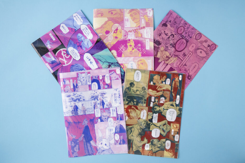 (限定グッズ「板垣巴留展開催記念 インビテーション風キャラファインフォリオ」)