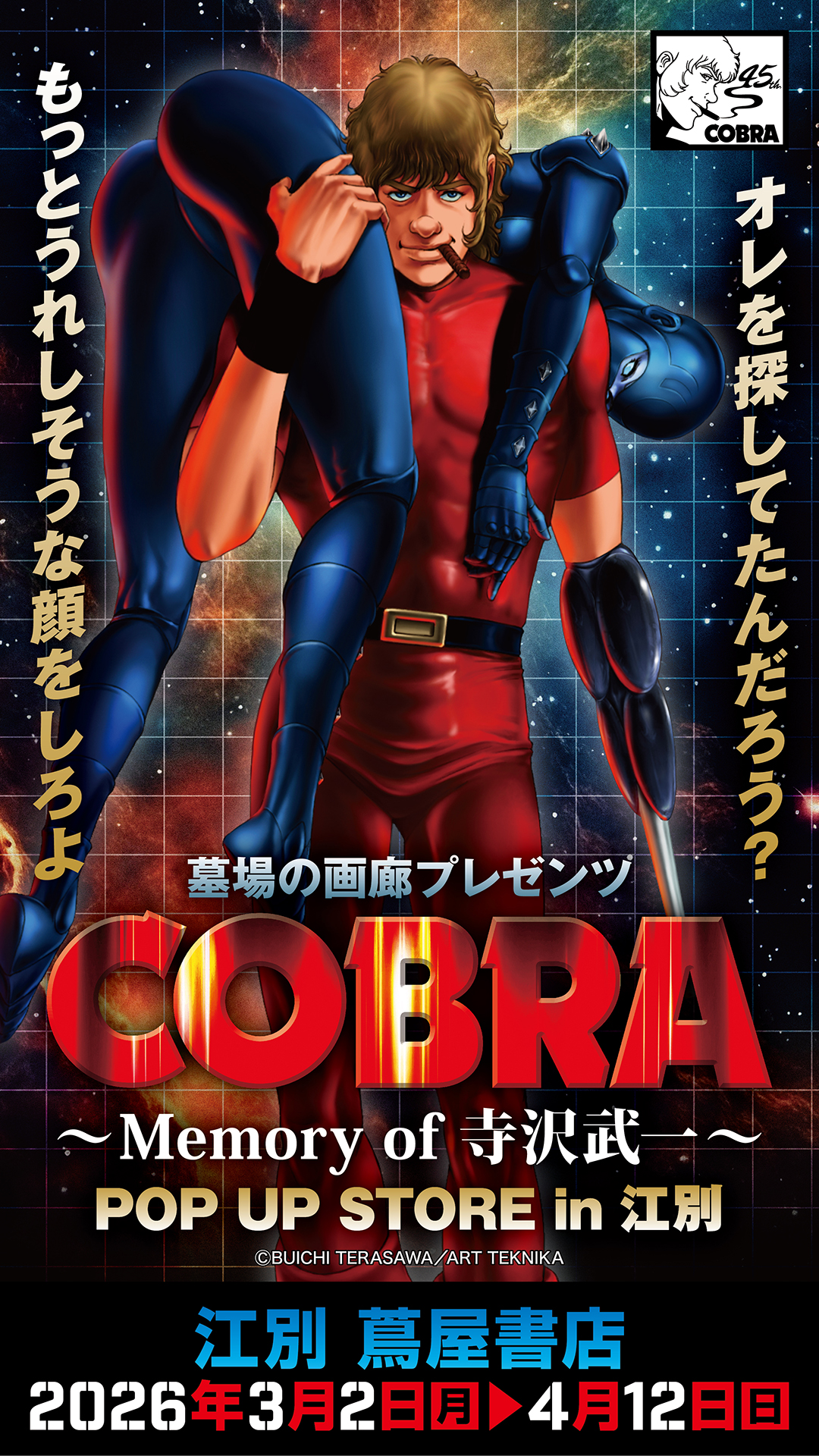 株式会社CRAZY BUMPは、不朽の名作SFアクション漫画『コブラ』の連載開始45周年を記念した「COBRA POP UP STORE~Memory of 寺沢武一~」が、2026年3月2日(月)より北海道の江別 蔦屋書店にて開催すると発表した。本イベントは、2023年9月に逝去された原作者・寺沢武一先生への想いを馳せ、コブラやレディ、宿敵クリスタル・ボーイたちの魅力を再確認する場として企画されました。