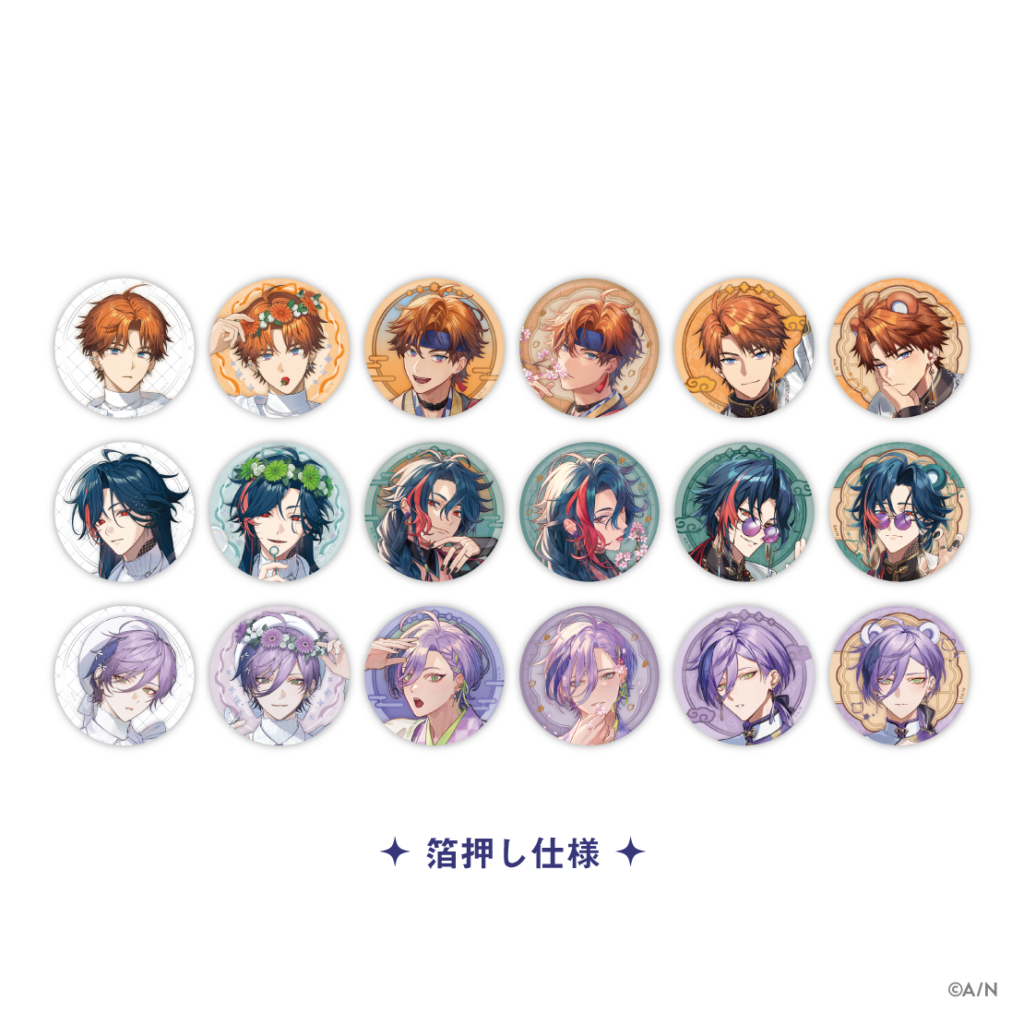 ■ランダム缶バッジ ・価格:650円(税込) ・種類:全18種ランダム ・サイズ(約):直径56mm ・素材:紙、ブリキ、PET ※本商品はお1人様1会計につき、40点までのご購入とさせていただきます。