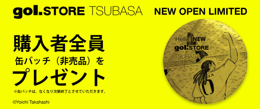 日本サッカーが世界に誇る、サッカー漫画・アニメの最高峰『キャプテン翼』。 その存在は日本はもとより、ヨーロッパ、南米、そしてサッカーが盛んではない国まで世界中を魅了し、多くのサッカー少年をプロサッカー選手へと導いたと言っても過言ではない。 そんな、『キャプテン翼』へのリスペクトをgol.なりにこめた旗艦店が、原作者である高橋陽一先生ゆかりの地"葛飾"に引き続き"吉祥寺"にも登場。 葛飾店には世界70ヶ国以上のお客様が来店 2023年5月に葛飾にオープンしたgol.STORE TSUBASA。お陰様でオープン以来、国内だけでなく海外のお客様にも多く訪れていただいています。そんな人気店が、JR中央線沿線の吉祥寺に2号店を4月1日にオープンいたします。 gol.STORE TSUBASA 〒181-0001 東京都三鷹市井の頭3丁目31−15 定休日:なし 営業時間:11時-18時 ・オープン記念 購入者全員に缶バッチプレゼント! gol.STORE TSUBASAオープンを記念して、4月1日より購入者全員にナトゥレーザの缶バッチ(非売品 / 数量限定)をプレゼント。 吉祥寺にも誕生したgol.STORE TSUBASAの新たなスタートを背番号「0」のナトゥレーザと共にお祝いしよう!